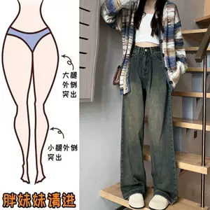 Plus Size Fat mm Cement Gray Wide Leg Jeans Women's Autumn and Winter New Retro High Waist Loose Slim Straight Pants Trendy