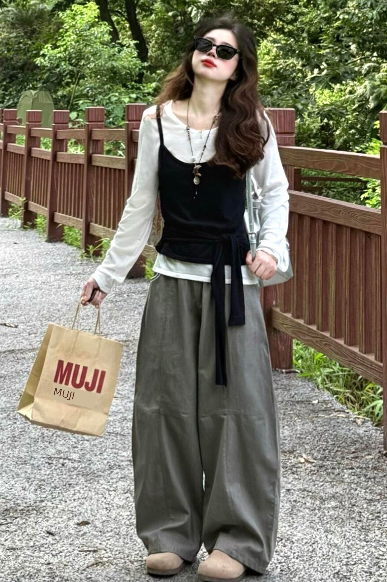 White Long sleeves Shirt Women 2025 New Autumn Korean Series Wear Absolutely Beautiful Sling Top Two-piece Suit